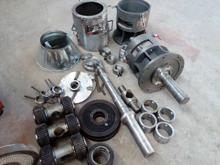 是把模輥付輥輪設(shè)計(jì)成圓錐體,從而使模輥之間接觸線(xiàn)上各點(diǎn)線(xiàn)速度相等,輥輪在平面上滾動(dòng)而不滑動(dòng),減少阻力,延長(zhǎng)使用壽命。在模輥付中,通過(guò)模板轉(zhuǎn)動(dòng)或是支架轉(zhuǎn)動(dòng)實(shí)現(xiàn)輥輪沿模板平面做相對(duì)運(yùn)動(dòng),物料則在模輥之間進(jìn)行擠壓,由旋轉(zhuǎn)輥輪強(qiáng)迫通過(guò)模孔成型。