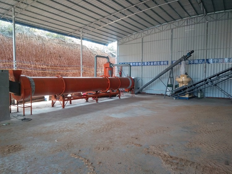 隨著圓筒的轉(zhuǎn)動(dòng)物料受重力作用運(yùn)行到較底的一端。濕物料在筒體內(nèi)向前移動(dòng)過(guò)程中,直接或間接得到了載熱體的給熱,使?jié)裎锪系靡愿稍铮缓笤诔隽隙私?jīng)皮帶機(jī)或螺旋輸送機(jī)送出。